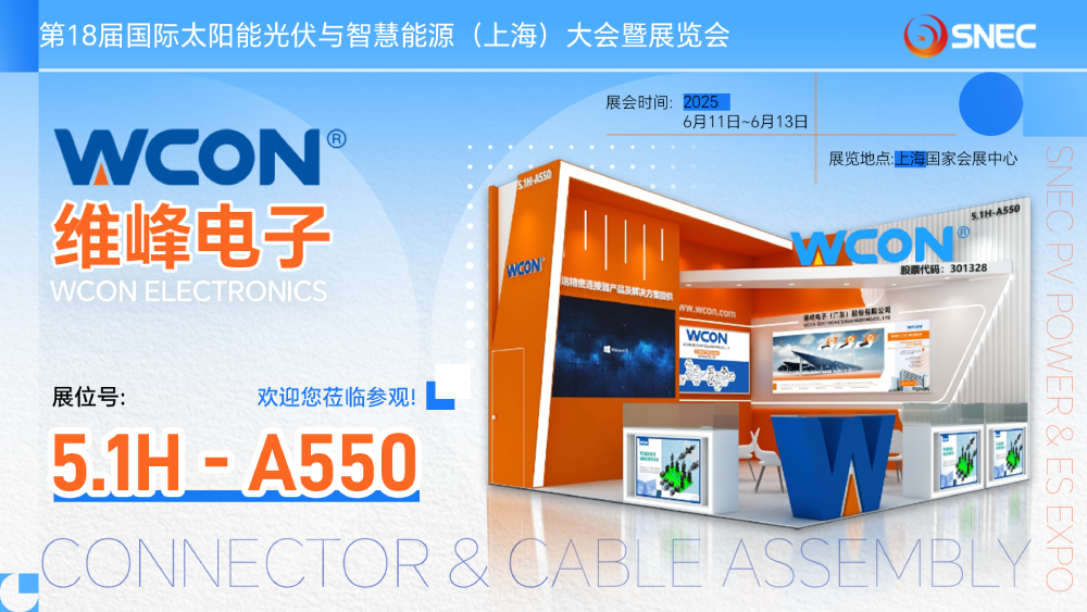 SNEC第十八屆(2025)國際太陽能光伏與智慧能源(上海)大會暨展覽會將于2025年6月11-13日在國家會展中心(上海)隆重舉行。這是全球光伏行業規模最大、影響力最廣的光伏盛會。維峰電子作為重要的參展商受邀參加。